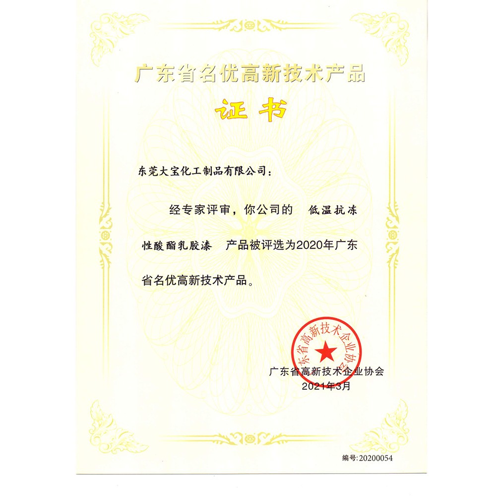 廣東省名優高新技術產品證書(乳膠漆)