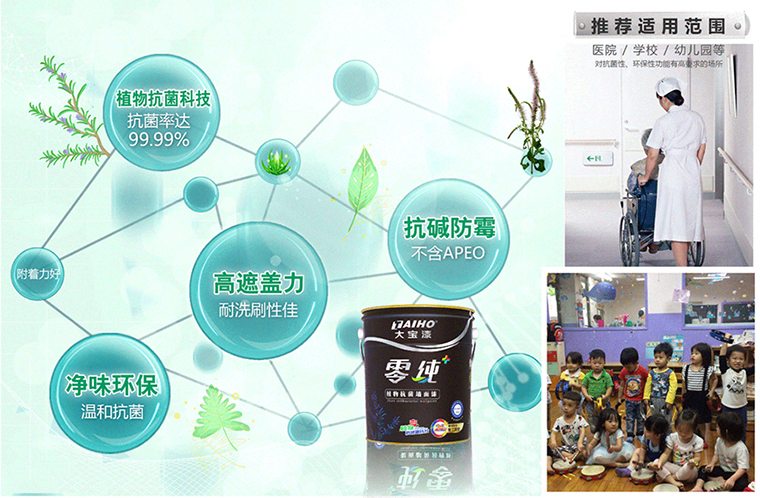 大寶始終將消費(fèi)者的健康放在首位,將【植物抗菌技術(shù)】導(dǎo)入涂料中,對(duì)配方技術(shù)進(jìn)行創(chuàng)新升級(jí),并成功研發(fā)零純+植物抗菌墻面漆。