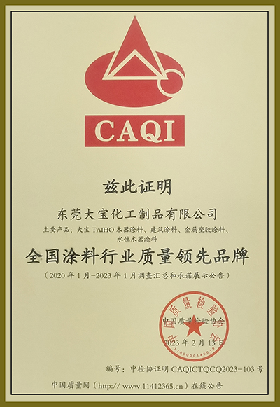 “提振消費信心”,為推動高質(zhì)量發(fā)展提供動力。一年一度的“3·15” 消費者權(quán)益日來臨之際,大寶漆憑借過硬的產(chǎn)品和服務(wù)質(zhì)量,再次榮獲中國質(zhì)量檢驗協(xié)會頒發(fā)的“全國質(zhì)量檢驗穩(wěn)定合格產(chǎn)品”、“全國涂料行業(yè)質(zhì)量領(lǐng)先企業(yè)”、“全國涂料行業(yè)質(zhì)量領(lǐng)先品牌”多項權(quán)威認(rèn)證。