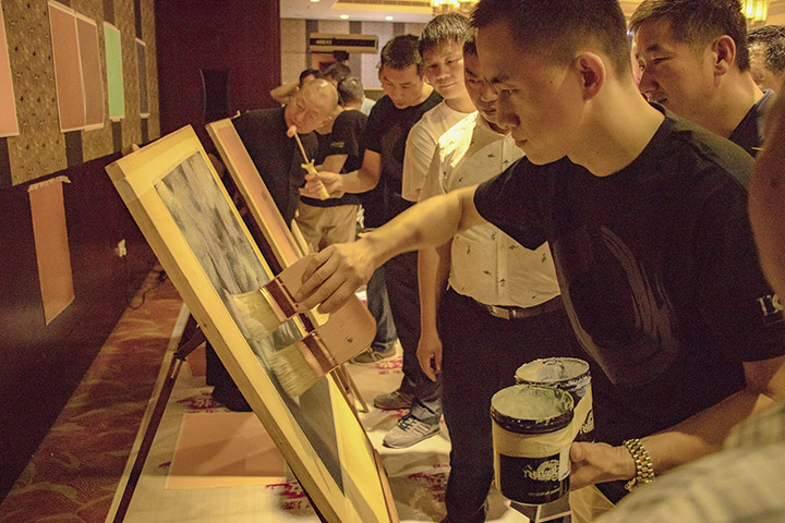 東莞大寶化工業務三部黃文敏經理對L’opera進口藝術涂料產品進行了詳細的解讀。他表示,L’opera進口藝術涂料是大寶國際為了滿足現代消費者高端家居需求所創建的全新品牌。大寶漆希望通過L’opera進口藝術涂料不同形式的藝術表現方式,來呈現優美奢華的家居藝術空間,為客戶打造個性化的藝術魅力家居。