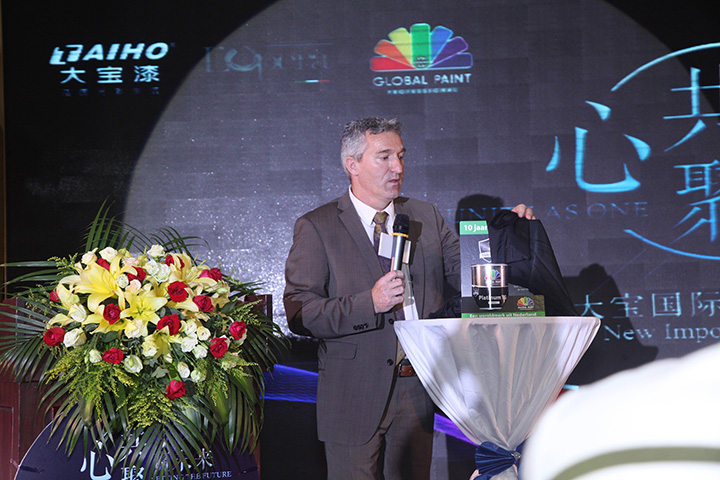 接著,荷蘭Global paint總裁Kees Willems發表講話。他強調,荷蘭Global paint公司依據最高的標準生產涂料,研發、創新和可持續性是公司的核心價值觀之一,嚴格控制涂料的最高效生產。此次與大寶漆攜手合作,是Global paint在中國市場邁出的新步伐。未來雙方將充分整合資源進行戰略合作,開啟共贏發展的新征程!
