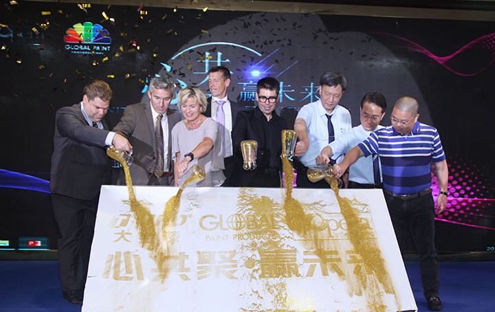 最后,大寶國際董事長陳賀生、經銷事業部葉子琛副總經理、荷蘭Global paint涂料公司代表、L’opera進口藝術涂料代表及眾多嘉賓一起舉行了新品發布啟動儀式。