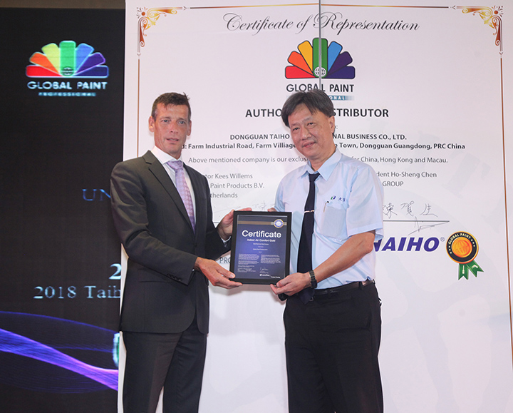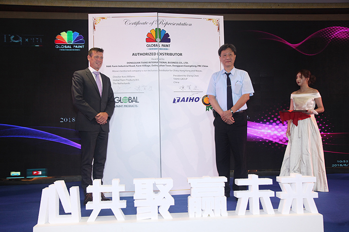 隨后,大寶國際陳賀生董事長與Global paint總裁Kees Willems上臺簽約,雙方正式建立全面、深入的戰略合作伙伴關系。