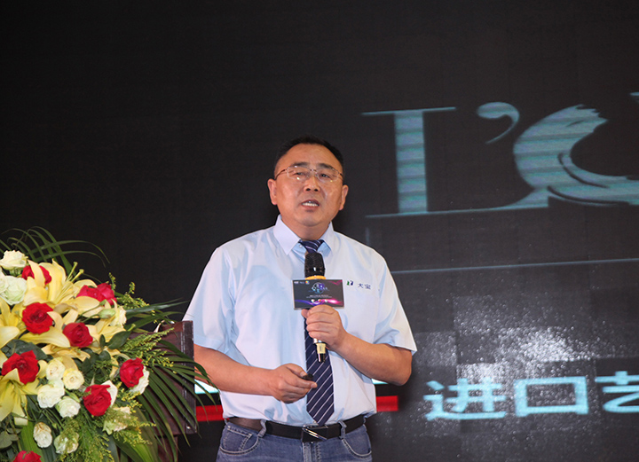 發布會于上午10:00正式開始。東莞大寶化工經銷事業部葉子琛副總經理致開幕詞。他表示,中國經濟發展未來的重心將從規模和速度轉向質量與效率,這要求我們降本增效,堅持可持續發展,生產真正適合市場需求的產品。因此,2017年4月,大寶漆組織團隊遠赴歐洲對優質涂料工廠進行考察,經過整整一年的互訪、協商、溝通,終于向大家呈現今天這場國際盛會。希望借助這場會議,推動行業從傳統進入國際化的進程,玩轉設計,品味時尚,這也不失為突破當前發展困境,重獲競爭優勢的戰略選擇。