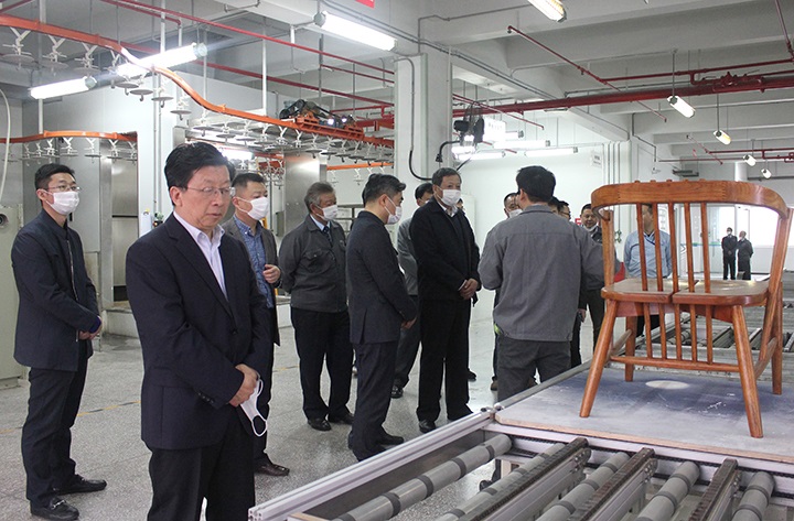 會后,在黃副總等領導的陪同下,調研團對大寶化工的生產車間等進行了實地考察。調研團不時向黃副總詢問了解有關大寶漆的研發創新、人才培養、自動化倉儲、智能涂裝線、品質管理的問題,雙方進行了深入交流。