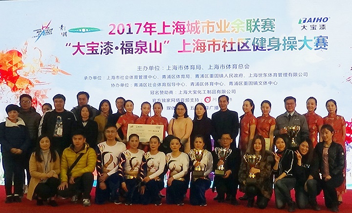 11月25日下午,由上海市社會體育管理中心、青浦區(qū)體育局、重固鎮(zhèn)人民政府主辦,上海大寶化工制品有限公司獨家冠名的大型市民健身操大賽——2017年“大寶漆·福泉山”杯在青浦體育館隆重舉行,來自上海市16個區(qū)22支隊伍共300多名選手匯聚一堂,在這一年一度,代表上海市社區(qū)健身操最高水平的大賽上,跳出活力,舞動申城。